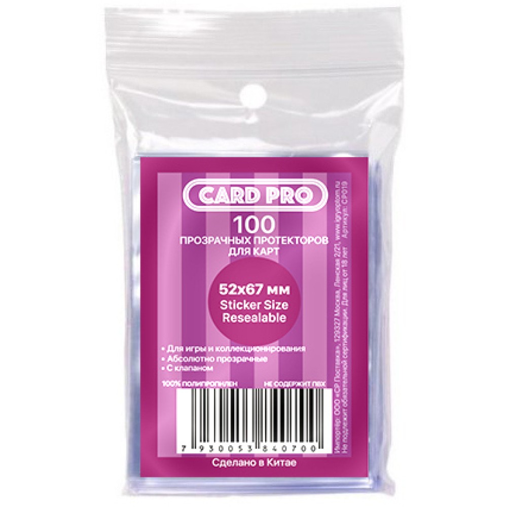 Протекторы Card-Pro для наст. игр 52*67 мм (100 шт) арт. СР019