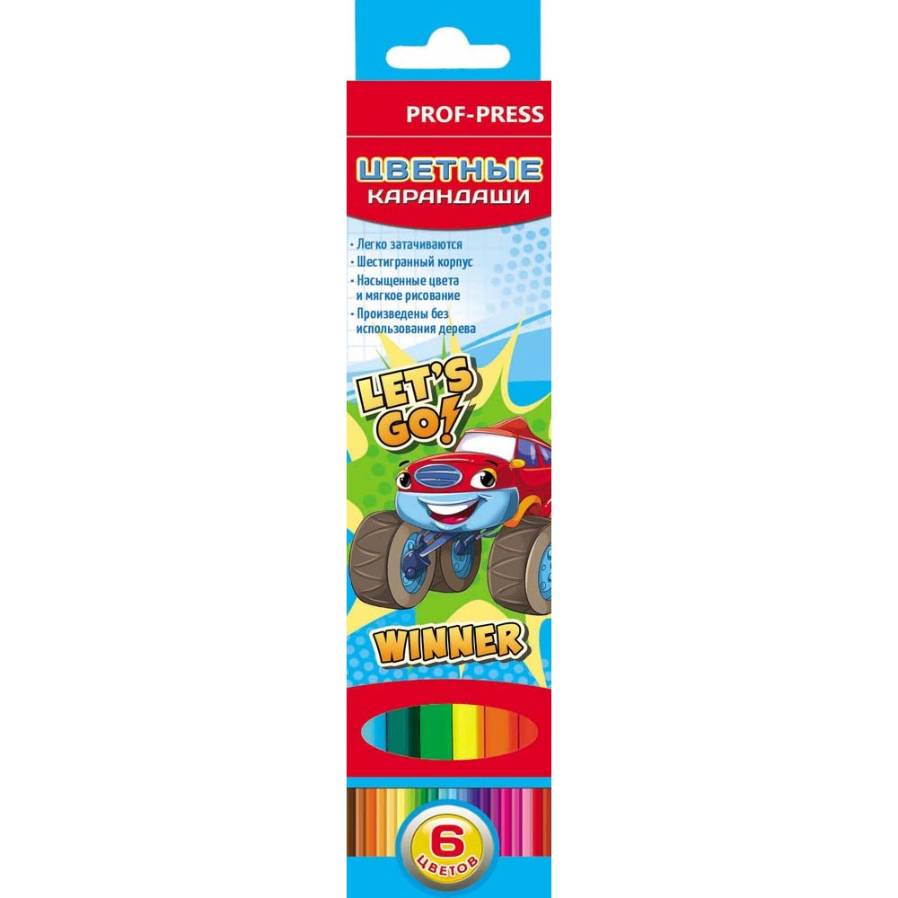 Проф-Пресс. Карандаши цветн пластик 6цв. "Крутое авто" арт.К-7422