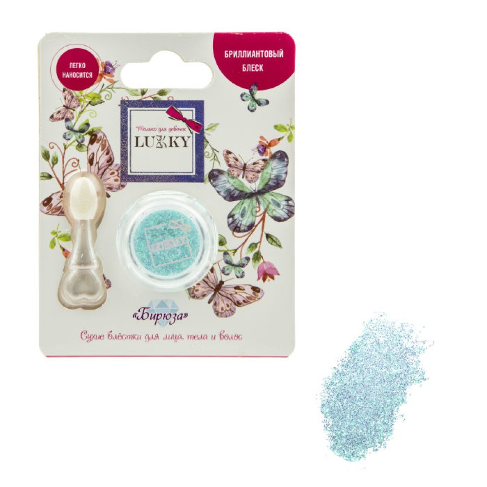 Lukky. арт.Т18899 Клейкие блёстки для лица и тела сухие,спрессов. цвет "Бирюза" 4 г,с аппликатором
