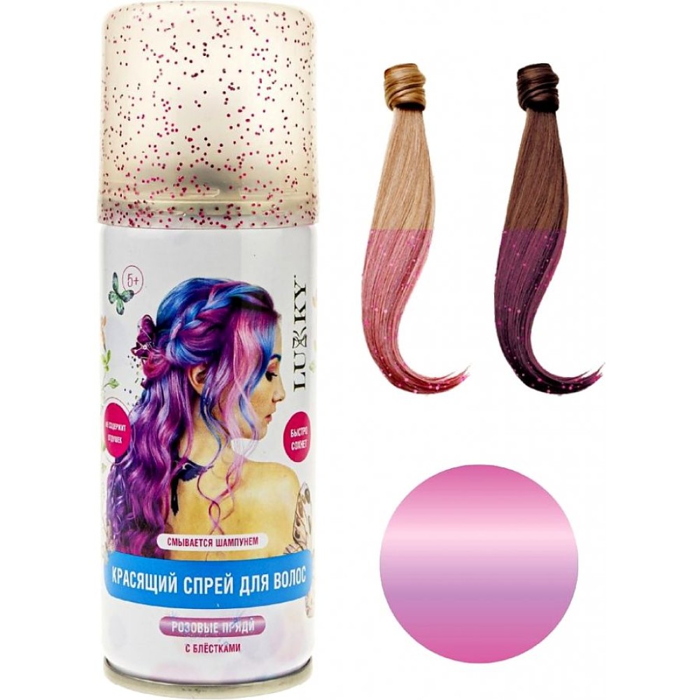 Lukky. арт.Т20315 Спрей-краска для волос в аэрозоли, для временного окрашивания, розовый с блёст.