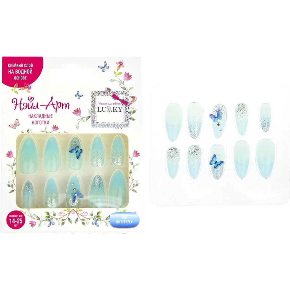 Lukky арт.Т21067 Нэйл-Арт Набор "#19 Butterfly" 10 наклад.ногтей на клеевой основе,14-25 лет,кор.