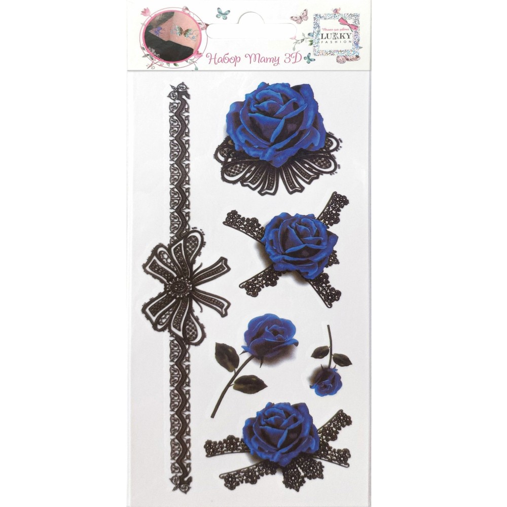 Lukky. арт.Т21482 Fashion Набор тату 3D "Синие розы" 1 вид, 9х18см