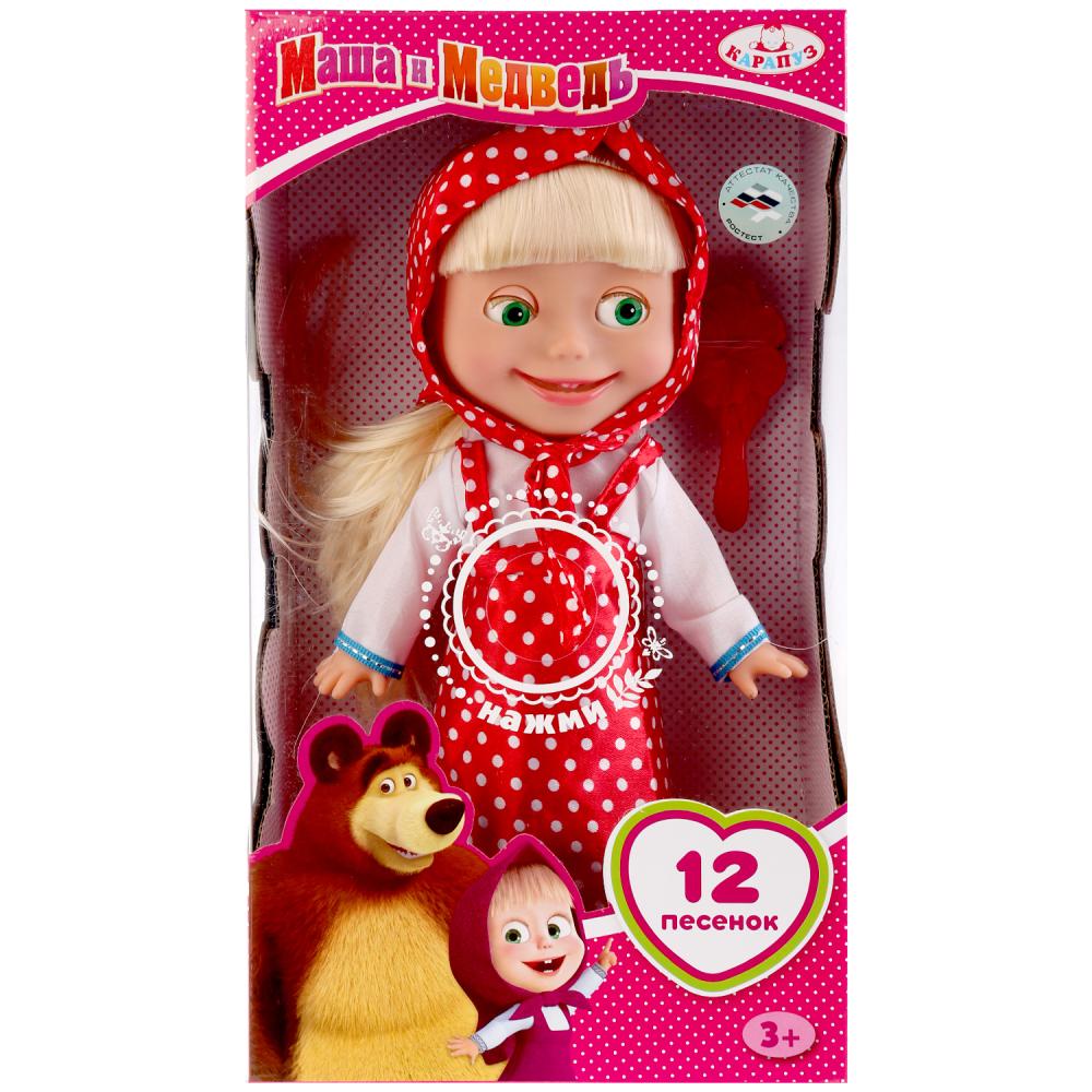 Карапуз. Кукла "Маша и медведь. Маша" 30см. озвуч.12 песен, Платье в горошек, в коробке, арт.Y83030B