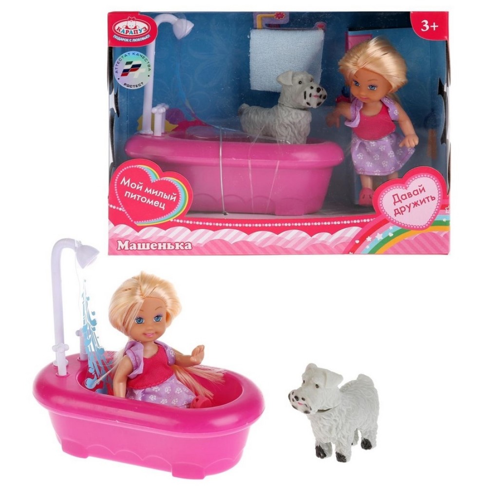 Карапуз. Кукла "Машенька" 12см. в наборе ванна с душем, питомец, аксесс. арт.MARY018X-RU