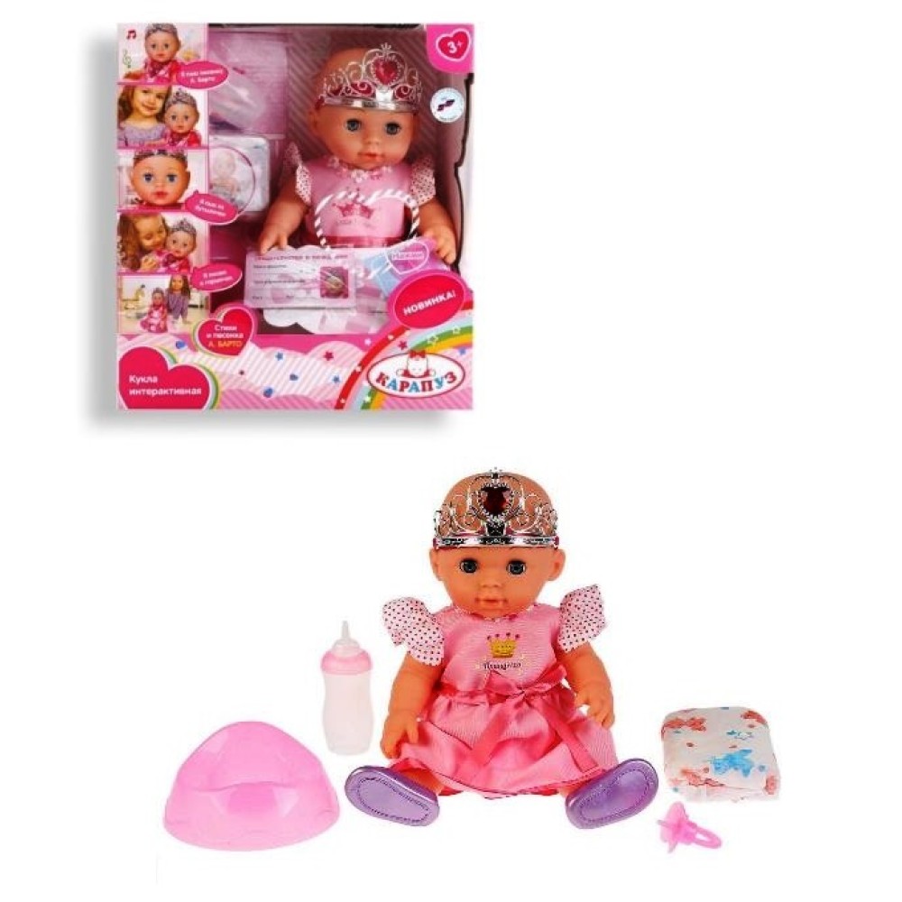 Карапуз. Пупс 30 см "Принцесса" 3 ф-ции,озвуч.,пьет и писает,закрыв.глазки арт.Y30DP-HDS-PRS-RU