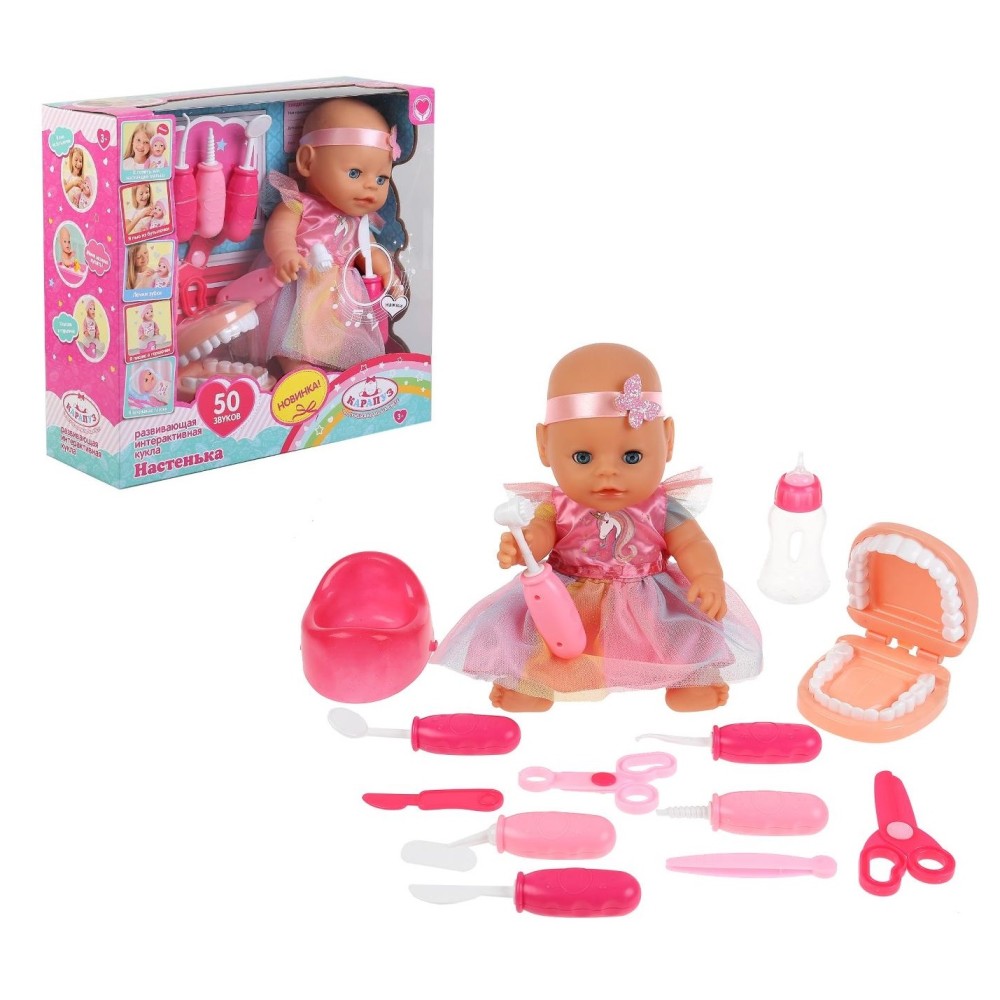 Карапуз. Пупс "Настенька" 30 см функцион. озвуч, пьет, писает,набор стоматолога, арт.Y30BB-DNTL-RU