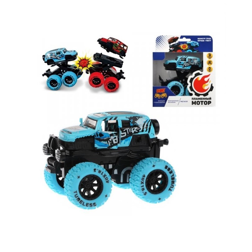 Пламенный мотор. арт.870515 Монстр трак Краш-тест, мет. откр.двери, свет, звук, подпрыг. на стойках,