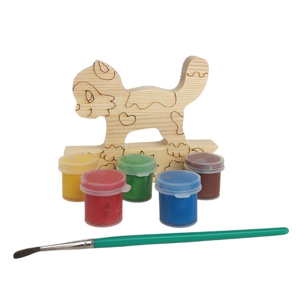 Набор под роспись "Котенок-качалка" с контуром арт.7960 с красками и кисточкой в пакете