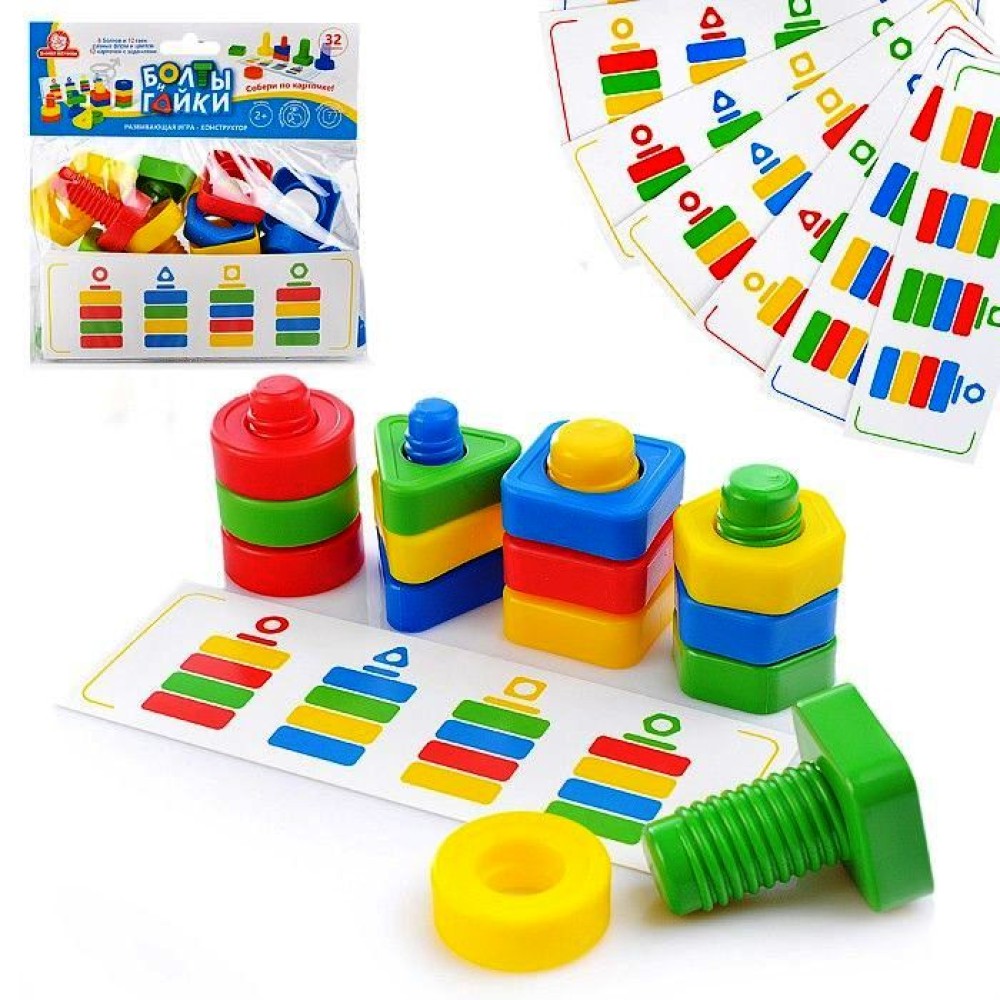 Татой.Болты и Гайки 32 эл. (8 болтов, 12 гаек, 12 карточек) тип 4 арт.1414 (в пакете)/13