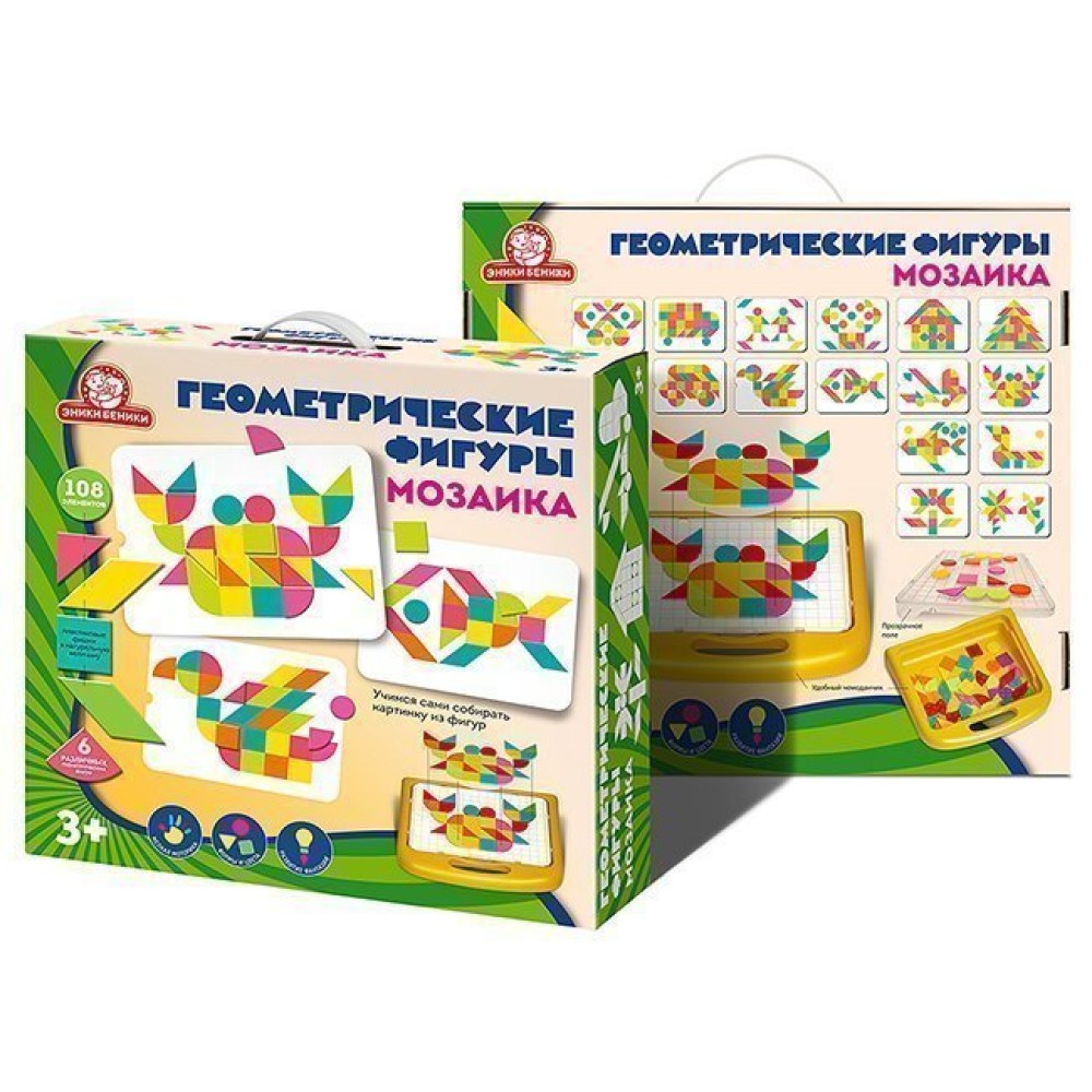 Татой.Мозаика "Геометрические фигуры" (108 фишек, 8 карточек, поле, чемодан) (арт. 1176)