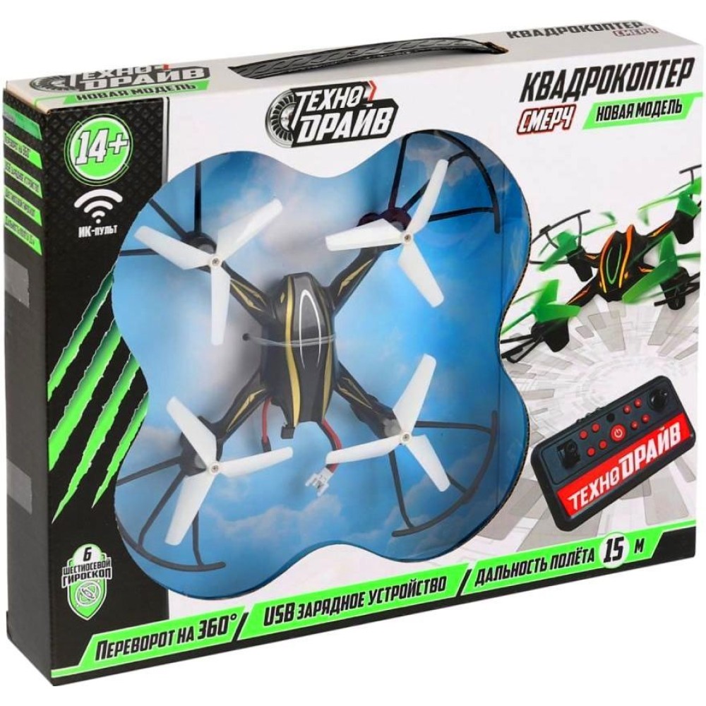 Технодрайв. Р/У "Квадрокоптер смерч" арт.1803F133-R свет , USB З/У 29*22,7*5,2см