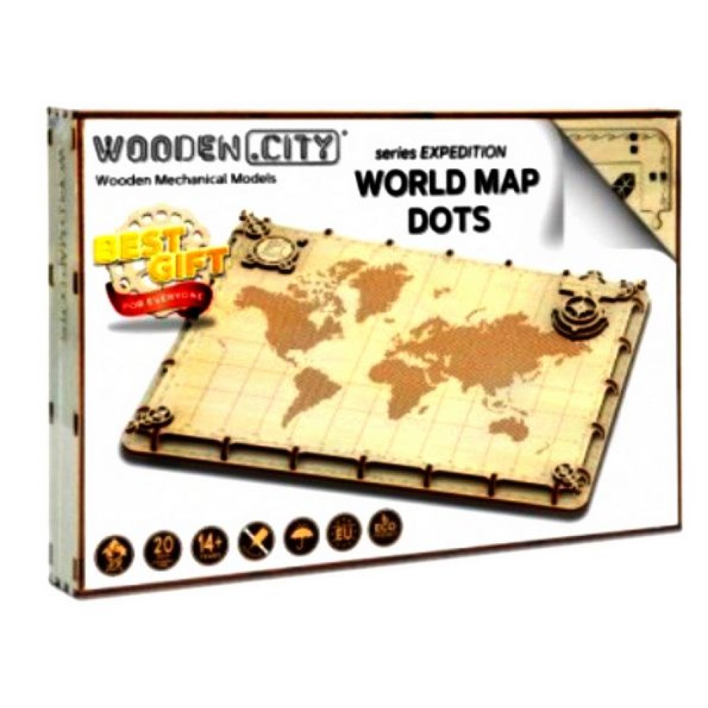 Wooden.City. 3D пазл деревянный "Карта мира" серия "Экспедиция" по точкам" арт. 507 (фикс.цена)