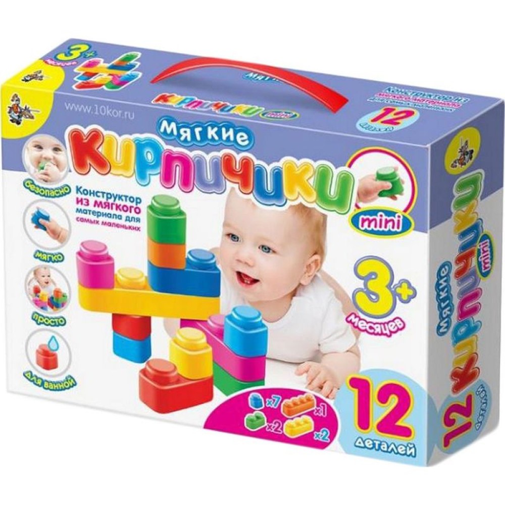 ДК.Конструктор "Мягкие кирпичики мини" арт.02671 из мягкого материала для самых маленьких. 12 дет