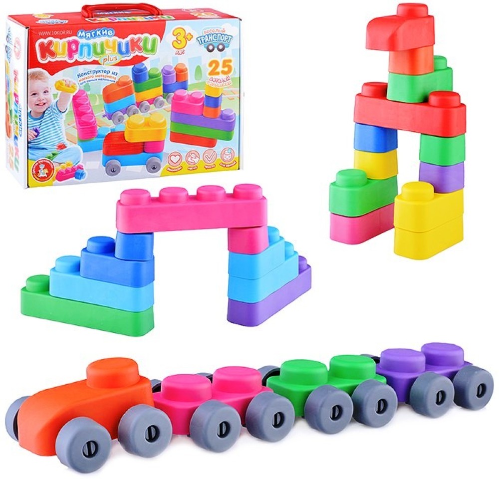 ДК.Конструктор "Мягкие кирпичики plus. Веселый транспорт" арт.04034 25 дет+колесики /7