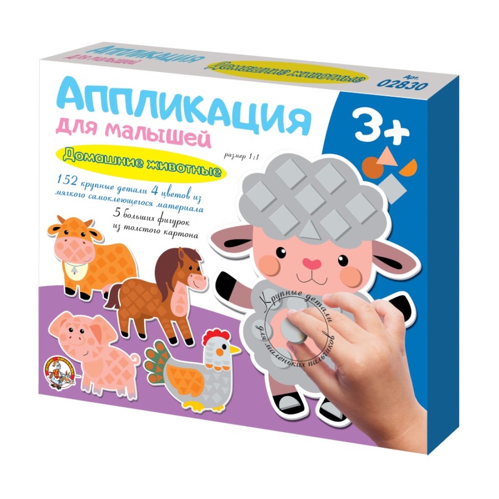 ДК.Набор для творчества. Аппликация для малышей "Домашние животные" (4 цв, 152 эл) арт.02830 /22