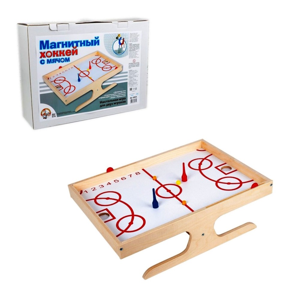 ДК.Настольная игра "Магнитный хоккей с мячом" (дерево) арт.03974