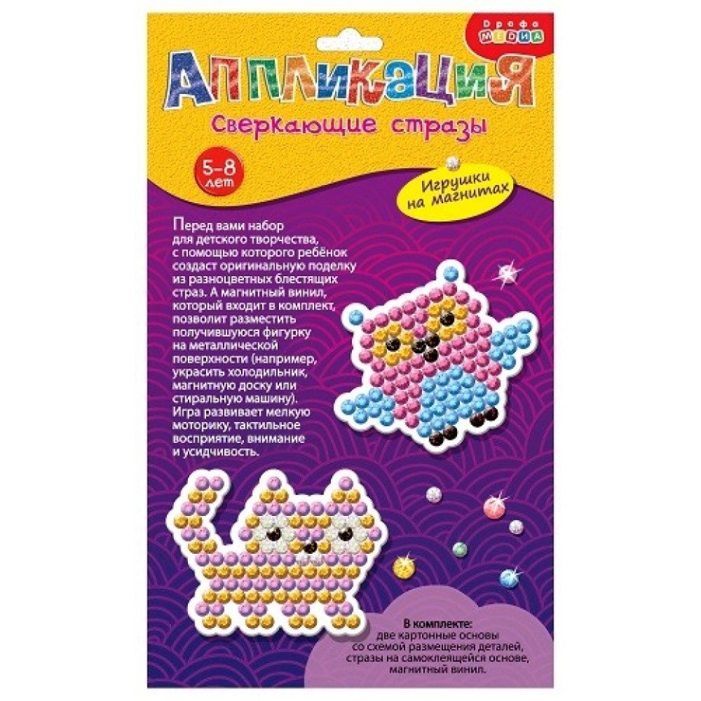 Дрофа. Аппликация "Сверкающие стразы Сова и Котик" (на магните) арт.3836 /30