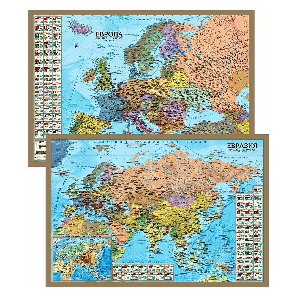Гео-Трейд. Двухсторонняя карта.Европа политическая + Евразия политическая