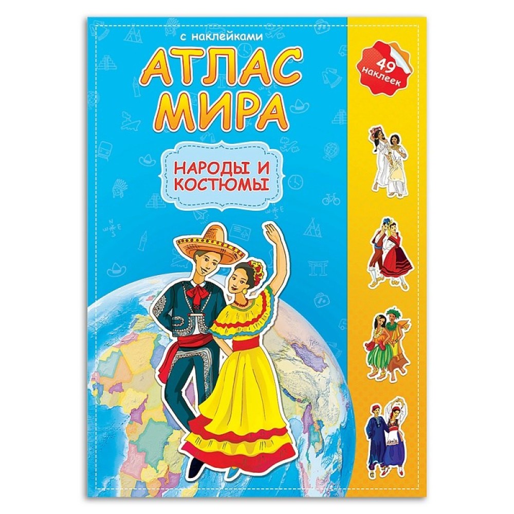 ГеоДом. Атлас МИРА с наклейками "Народы и костюмы" 16 стр. 21х29,7