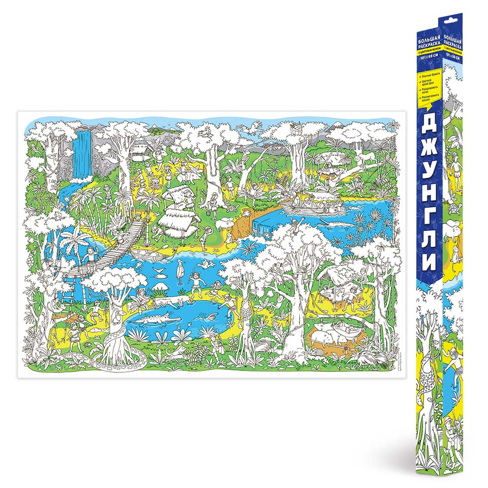 ГеоДом. Большая раскраска. "Джунгли" с цветным фоном 101х69 см.*