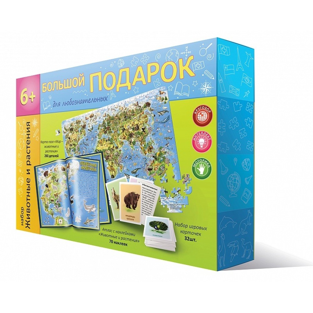 ГеоДом. Большой подарок "Животные и растения" Пазл 260 дет. + Атлас с наклейками+Игровые карточки