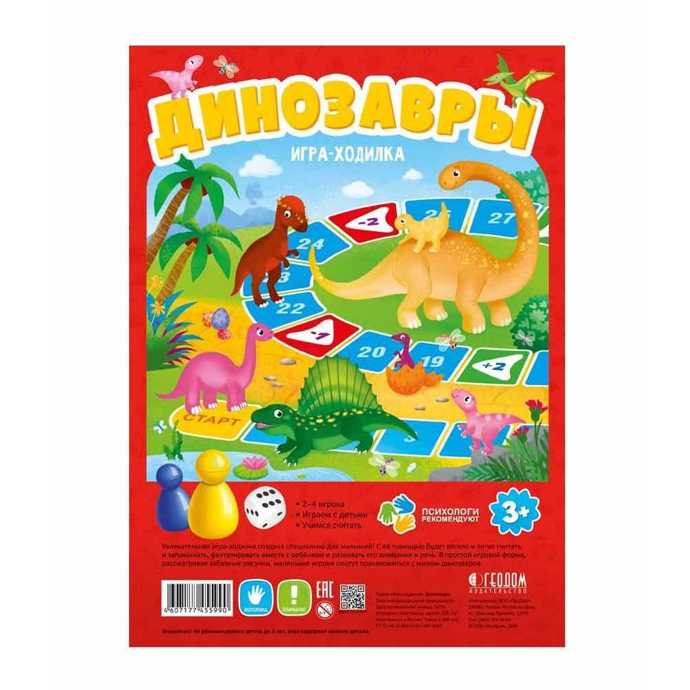 ГеоДом. Игра-ходилка с фишками для малышей. "Динозавры" 42х29,5 см.
