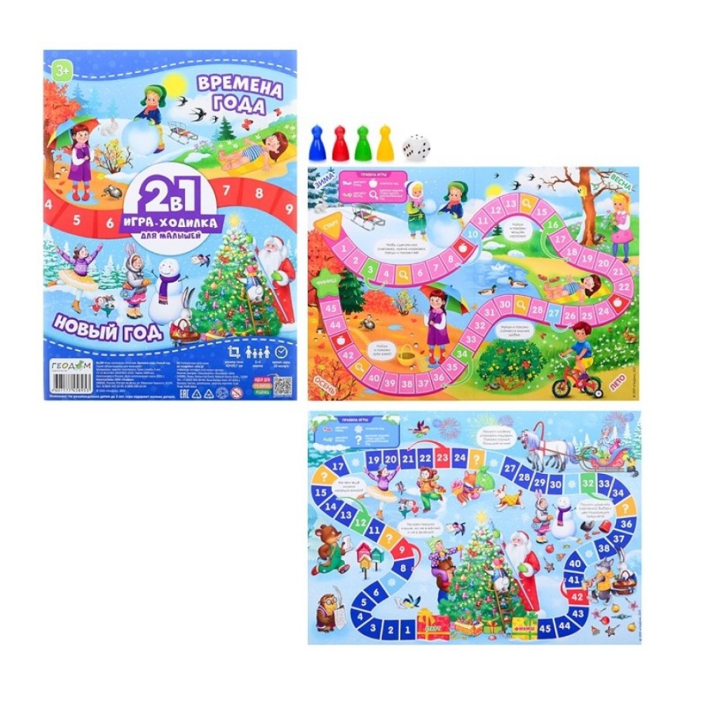 ГеоДом. Игра-ходилка с фишками для малышей. "Времена года+Новый год" 2в1 42х29,7 см