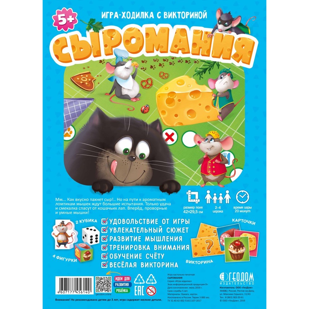 ГеоДом. Игра-ходилка с викториной. "Сыромания" 42x29,5 см