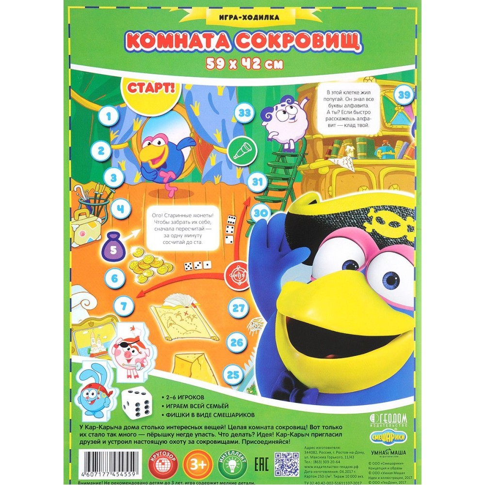 ГеоДом. Игра-ходилка. Смешарики. Комната сокровищ. 59х42 см.