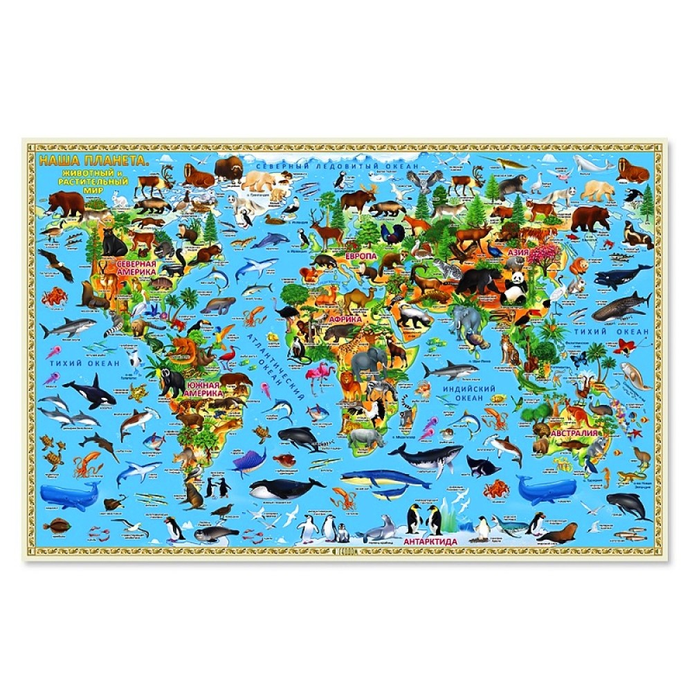 ГеоДом. Карта Мира настольная. Наша планета. Животный и растительный мир. 58х38 см /50