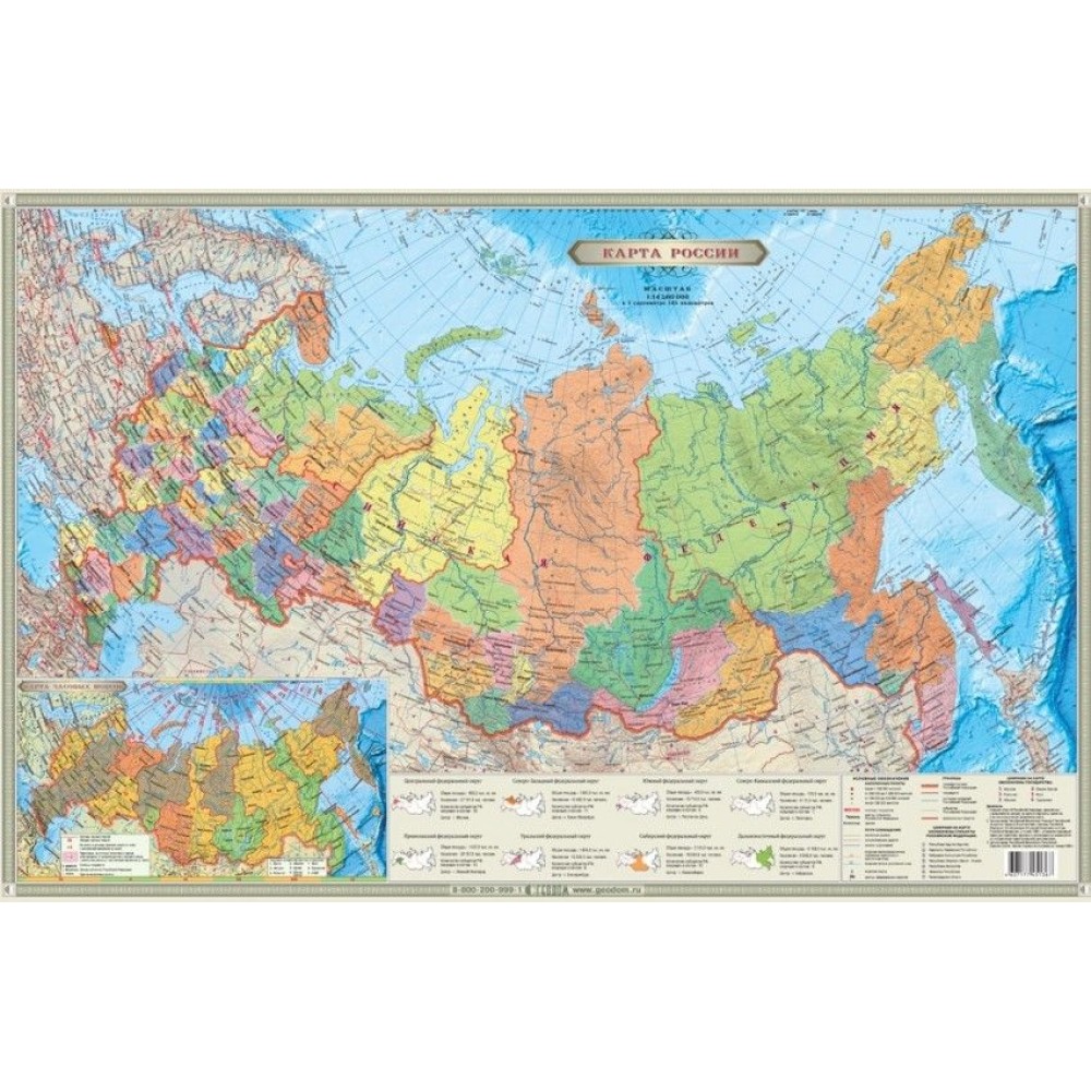 ГеоДом. Карта настольная. Российская Федерация П/А Субъекты федерации. М1:14,5 млн. 58х38 см /50