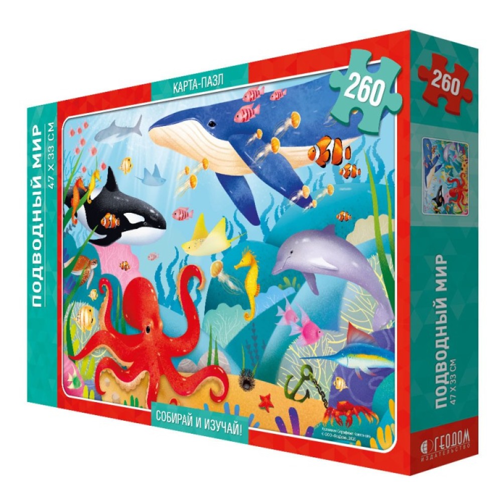 ГеоДом. Карта-пазл "Подводный мир" 260 дет. 47х33 см.