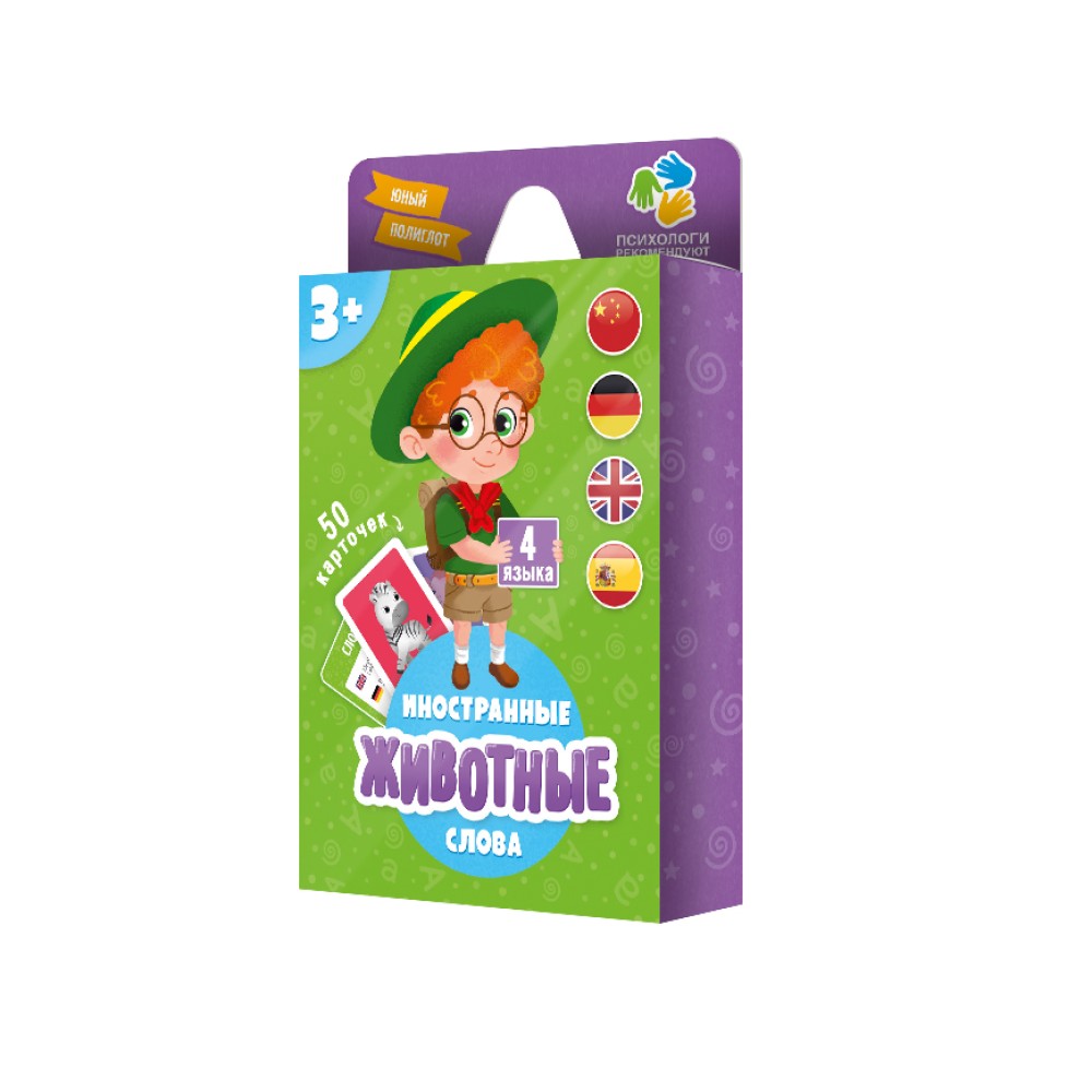 ГеоДом. Карточная игра "Животные. Серия Юный полиглот" 50 карточек. 8х11,5 см.