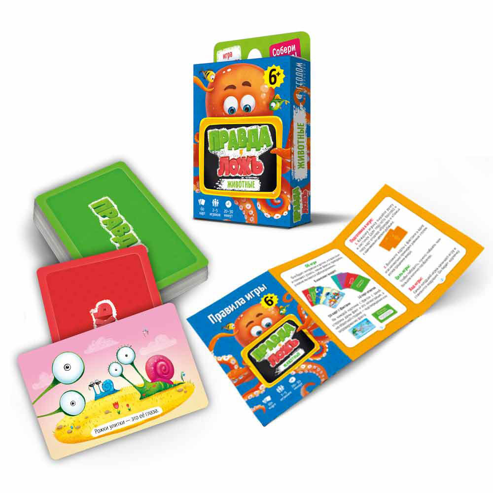 ГеоДом. Карточная игра "Правда-ложь. Животные" 60 карточек.