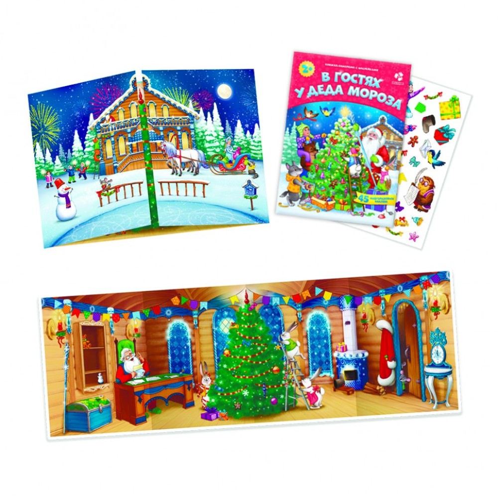 ГеоДом. Книжка-панорама с наклейками "В гостях у Деда Мороза" 22х29,7 см/30