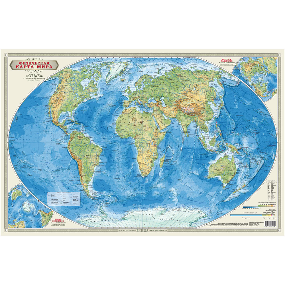 ГеоДом. Настольная карта "Мир Физический" М1:55 млн. 58х38 /50