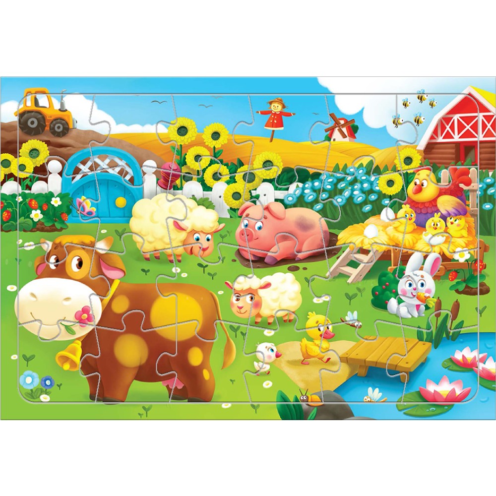 ГеоДом. Пазл листовой на подложке. Животные на ферме. 24 детали. 21х29,5 см
