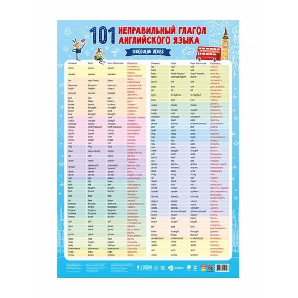 ГеоДом. Плакат дидактический. "101 неправильный глагол английского языка" 45x64 см