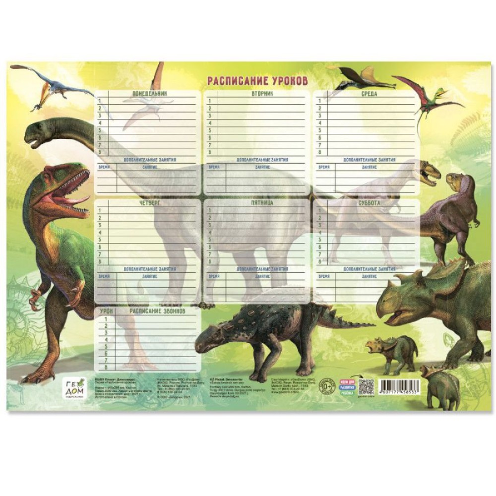 ГеоДом. Расписание уроков. "Динозавры" 28,5х40 см.