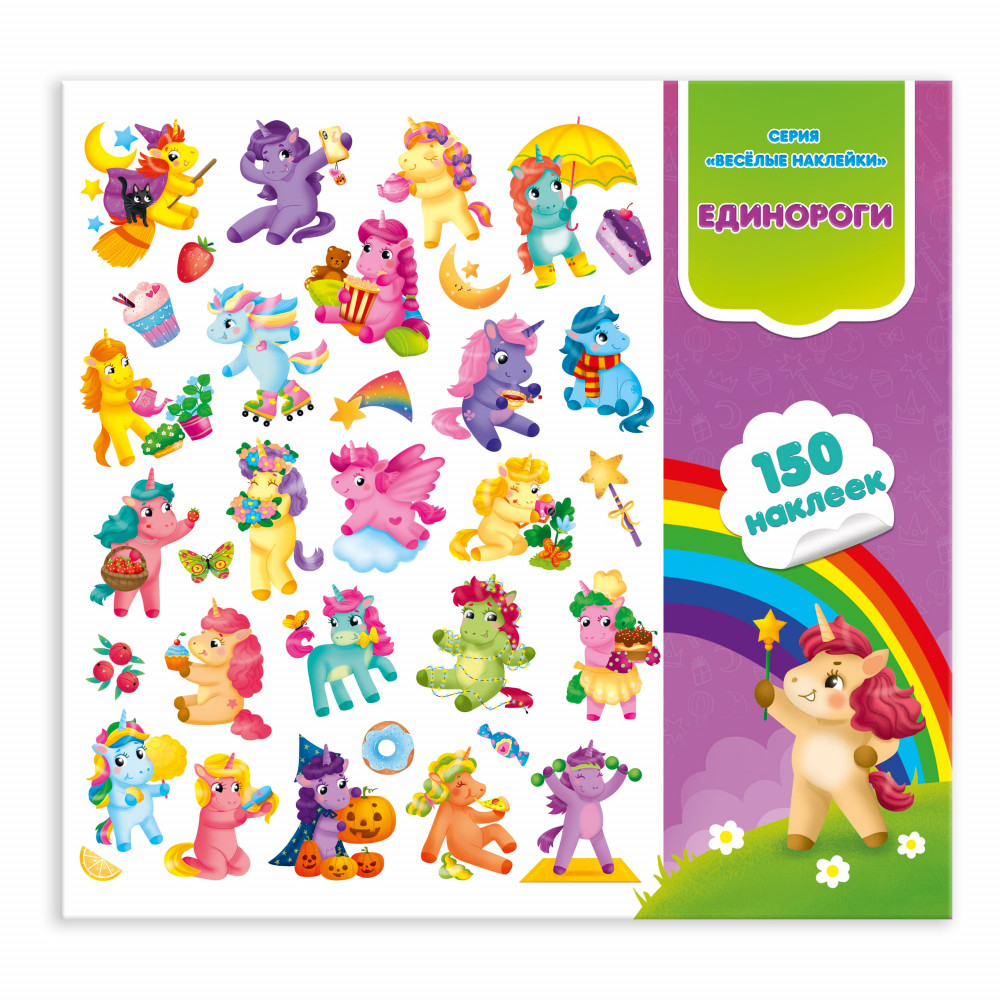 ГеоДом. Весёлые наклейки. "Единороги" 150шт. 22,7*20,8 см.