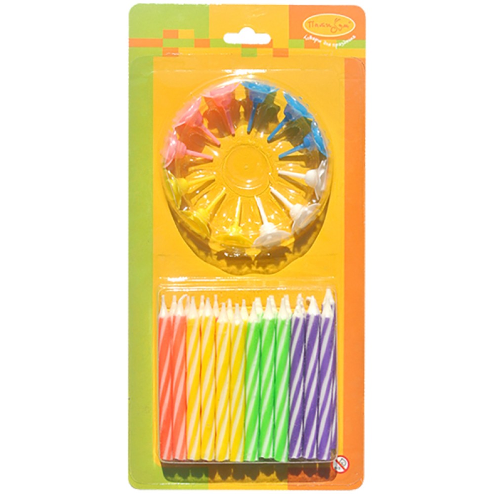 "Пати бум" Набор свечей с держателями "2-х цветные" 6 см.