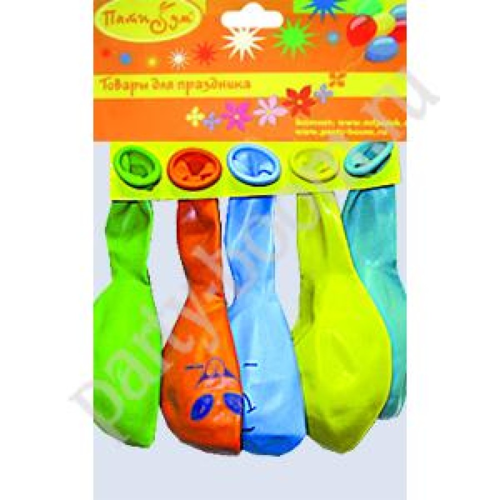 "Пати бум" Шар круглый 30см Х-58 Пастель+Декоратор (шелк.) Улыбки 5 шт.