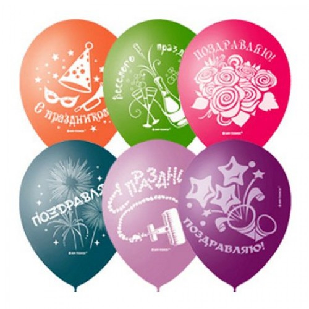 "Пати бум" Шар круглый 30см Пастель+Декоратор "Праздничная тематика" 50 шт. (шелк, 2 ст. рис.)