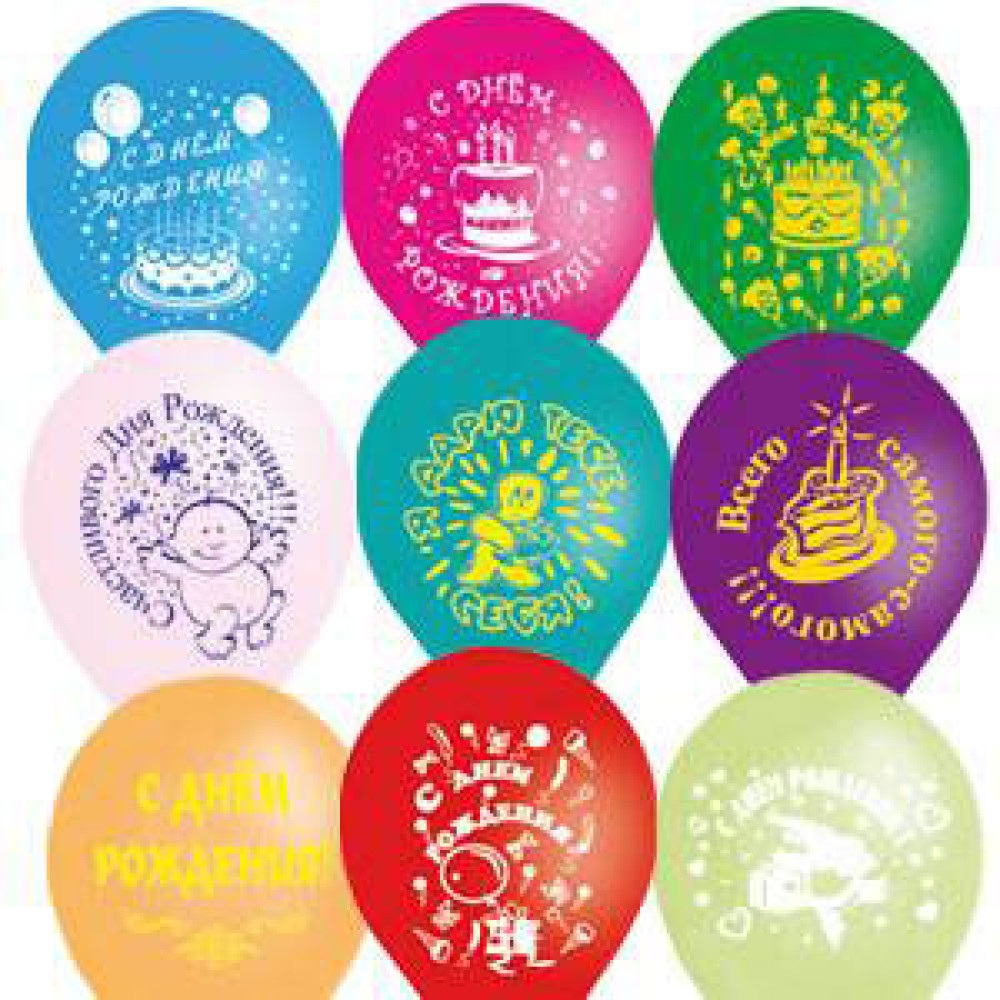 "Пати бум" Шар круглый 30см Пастель+Декоратор "С Днем Рождения" 25 шт. (5 ст. рис.)