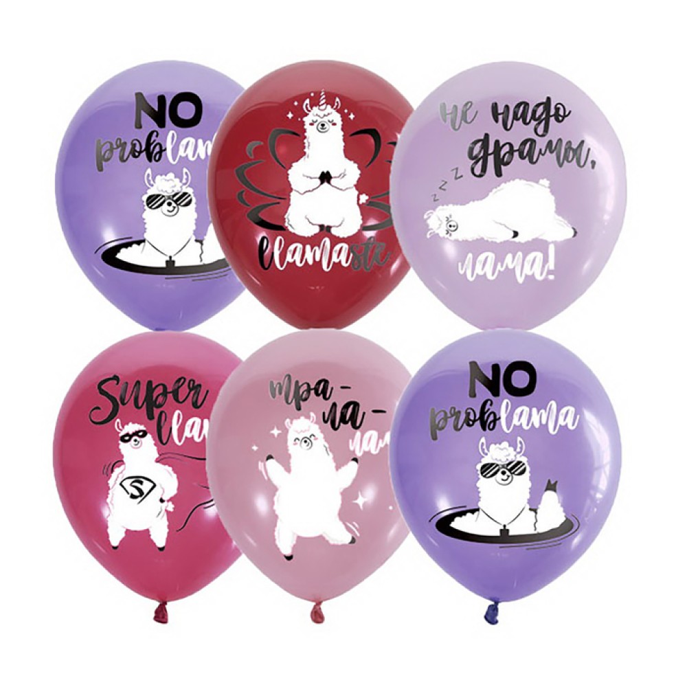"Пати бум" Шары латексные 30 см Пастель+Декоратор (шелк) 1 ст. 2 цв.рис. "Лама" 25шт арт.MP 12