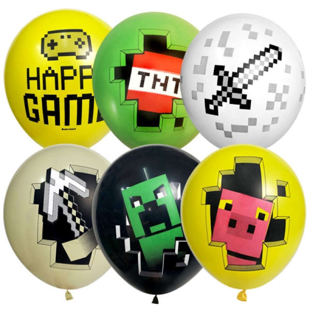 "Пати бум" Шары латексные 30 см "Пиксели" ассорти рис. 25шт MP 12