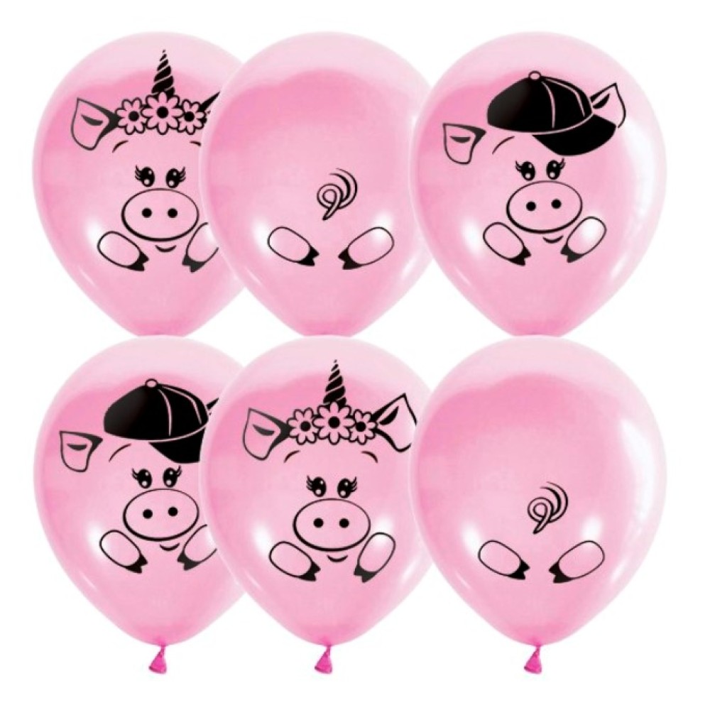 "Пати бум" Шары латексные 30 см "Pink" (шелк) 2 ст. рис. "Хрюшки" 25шт арт.MP 12
