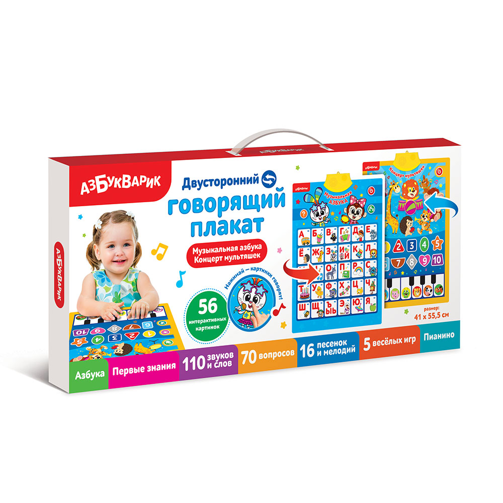 Азбукварик.Говорящий плакат "Музыкальная азбука Концерт мультяшек" (двусторонний)