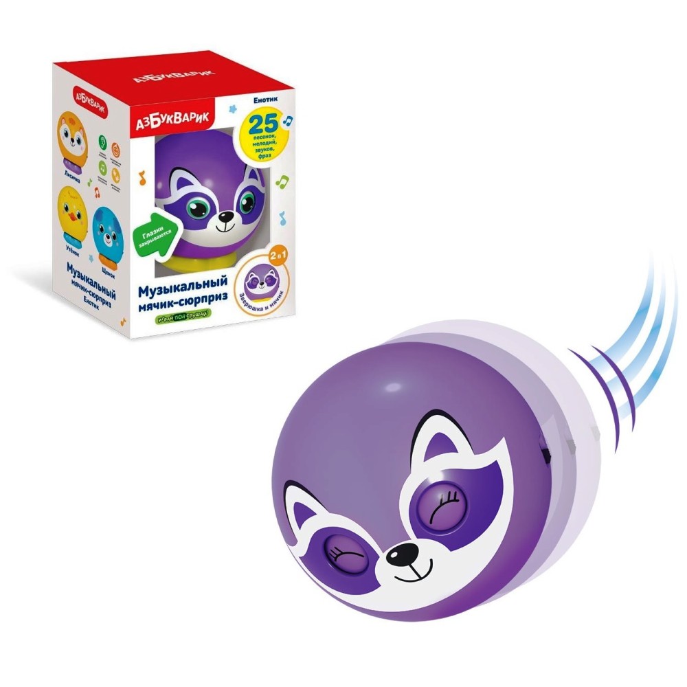 Азбукварик.Музыкальный мячик-сюрприз "Енотик"