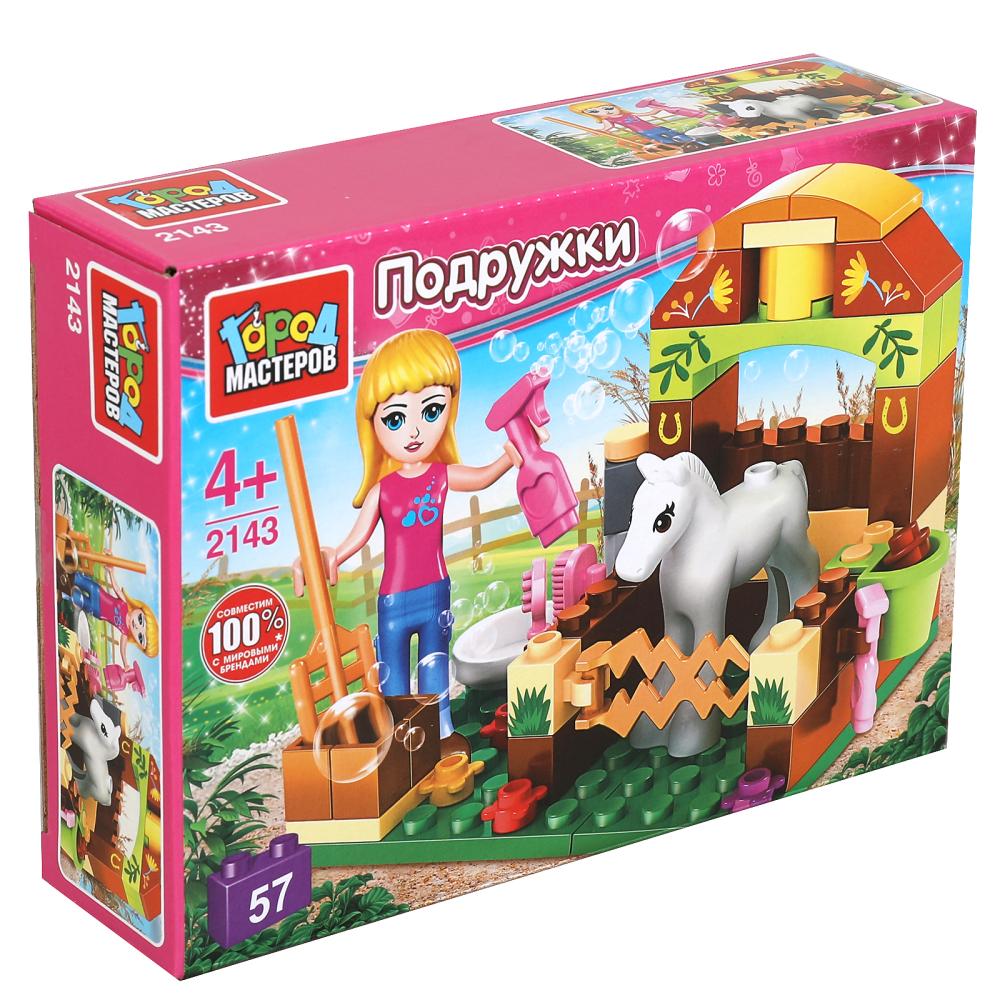 Город мастеров. Конструктор арт.2143-R "Конюшня" с фигуркой и аксесс. 57 дет.